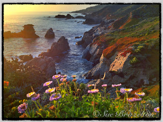 Before leaving the area, I stopped by the Carmel Mission. It was closed, but the early morning light was so pretty, I threaded my arms through the gate (you can see my shadow in the lower right corner), and used HDRPro to take the picture, with the intent of converting it into a painting. I may be addicted to this app.